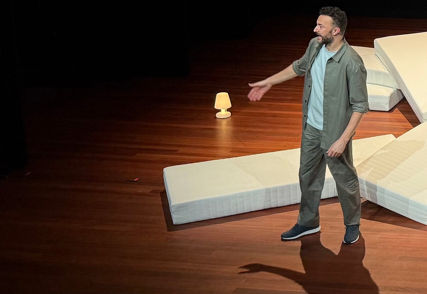 Woensdag bezocht ik de eerste try out van de voorstelling Wat Als… waarin Nasrdin Dchar het publiek deelgenoot maakt van zijn interne worstelingen. Het is een knappe voorstelling waarin tal van vormen gemengd worden, van klassiek drama tot stand up comedy. Nasrdin is een geëngageerd acteur die het wereldnieuws niet koud laat en die ook nog eens geteisterd wordt door tal van fobieën. Je krijgt het allemaal te zien. Toch verliet ik niet alleen verpletterd maar ook met een goed gevoel de zaal. De voorstelling trekt nu door heel Nederland en raakt in hoog tempo uitverkocht.