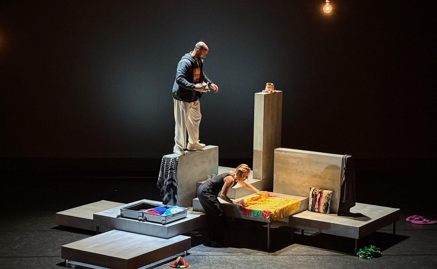 Het stuk gaat er over wat ze nu moeten doen. Naar Marokko emigreren met het gezin, zoals hij wil, of in Nederland blijven en daar verder werken aan hun toekomst, zoals zij wil.